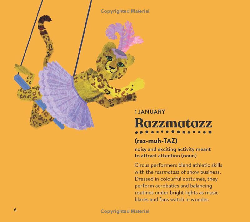 Follow a menagerie of animals as they teach one new word for each day of the year, including a pronunciation guide, definition, sample sentence, and interesting trivia about the word's usage or etymology. Each month concludes with an outlandish story that features all the new words learned.