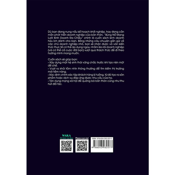 Dù bạn đang nung nấu kế hoạch khởi nghiệp hay đang cần mẫn phát triển doanh nghiệp của bản thân “Bùng nổ mạng lưới kinh doanh đa chiều” chính là cuốn sách kinh doanh hữu ích dành cho bạn. Bằng những câu chuyện gần gũi về các chủ doanh nghiệp nhỏ, bạn sẽ nhận được vô vàn kiến thức thực tế có thể áp dụng ngay, nhằm lèo lái doanh nghiệp và có thể cả cuộc đời của bạn vượt qua những thách thức để đi theo con đường mà mình mong muốn.