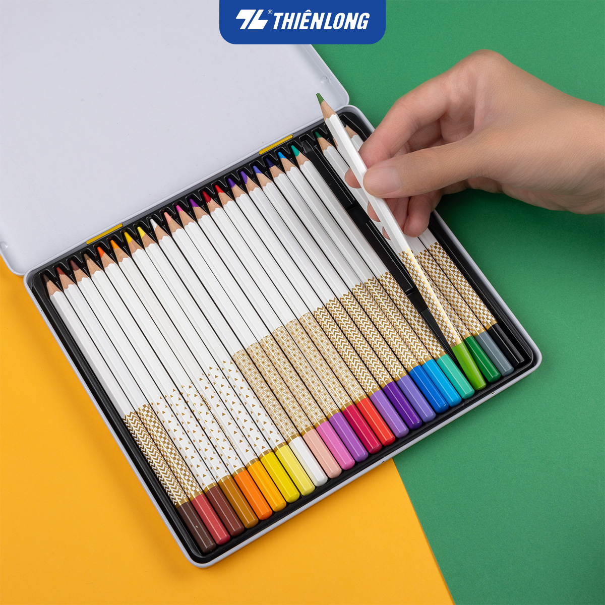 Hộp Thiếc 24 Bút Chì Màu Forest - Y PLUS+ PC180100 - Thiết kế thân bút bằng gỗ với phần ruột chì mềm, bền, dễ chuốt hạn chế gãy ngòi khi vẽ. - Chất chì