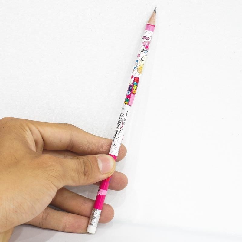 Kích cỡ: 175x8mm Độ cứng ngòi bút: 2B Cán bút: Cán bút 6 cạnh Đầu bút có tẩy hay không: không Quy cách: một hộp màu có 12 chiếc Chế tạo chất liệu tinh xảo