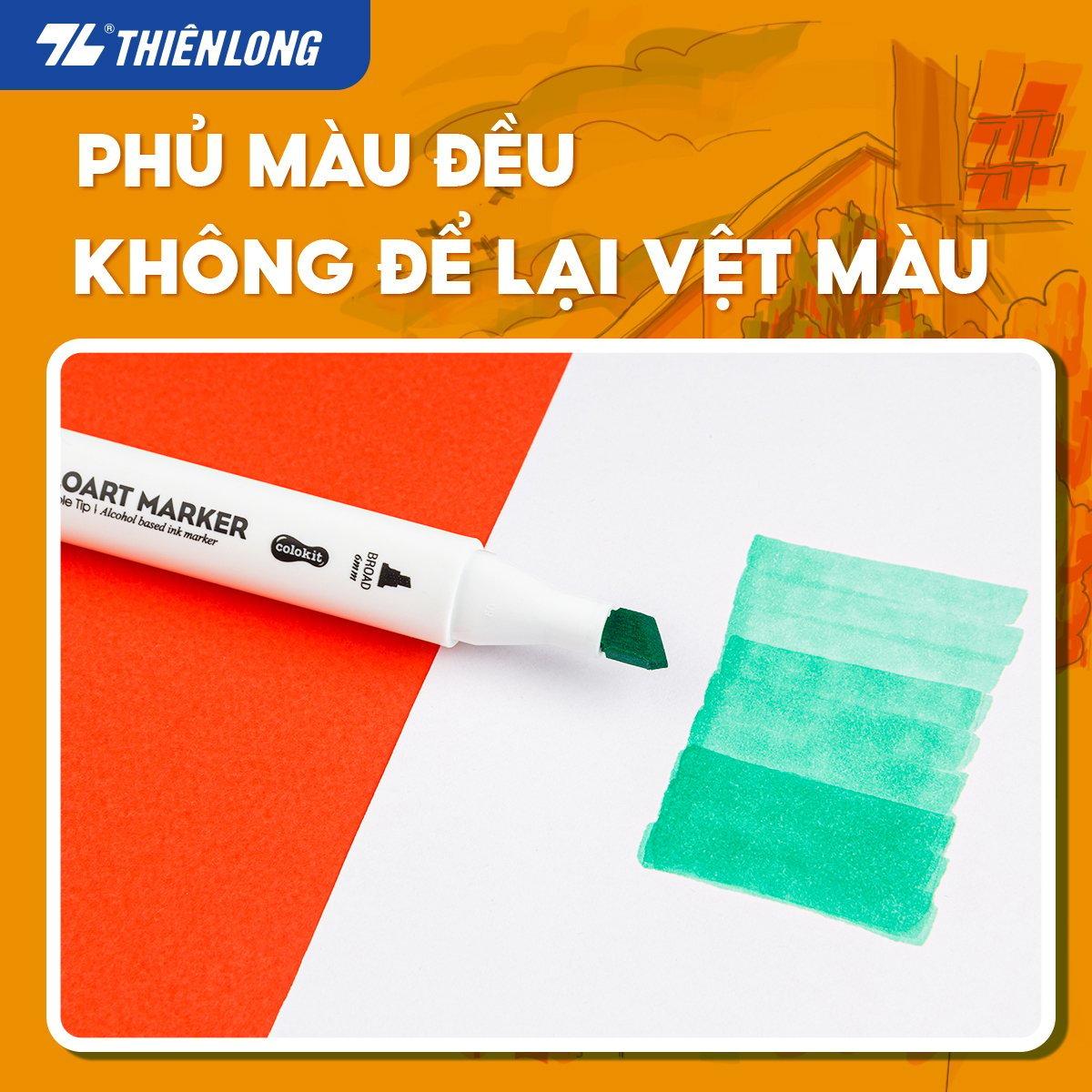 Bút dạ màu - bút marker Thiên Long Colokit ART MARKER, hệ mực bền, mau khô. Thân bút có hai đầu Broad Chisle và Semi Brush, đầu bút dạng cọ và một đầu vát xéo.