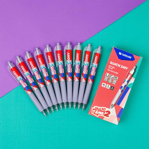Hộp 10 Bút Gel Quick Dry 0.5 mm - Thiên Long GEL-045 - Mực Đen - Bút Gel là nhãn hàng Bút viết ra đời nhằm mang đến sự tiện lợi, thoải mái cho người