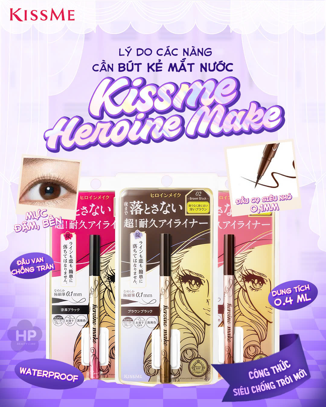 1/ Công dụng Bút Kẻ Mắt Nước Không Trôi Không Bị Lem Nét Kẻ Siêu Mãnh Kissme Eyeline (0.4 mL):