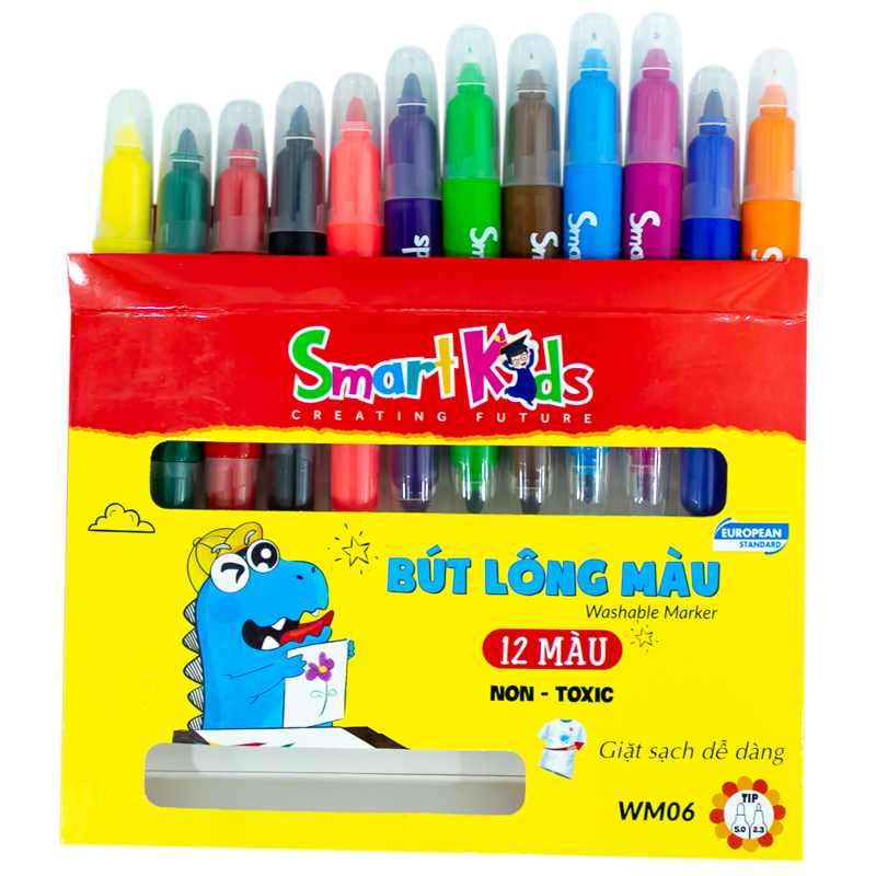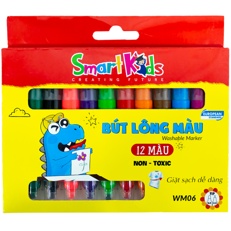 - Bút lông màu rửa được SK-FLT1001CL của Smartkids (12 màu) được sản xuất theo tiêu chuẩn chất lượng châu Âu EN 71 (1,2,3) và ASTM D4236. Nhờ sở hữu đầu lông kim được thiết kế đặc