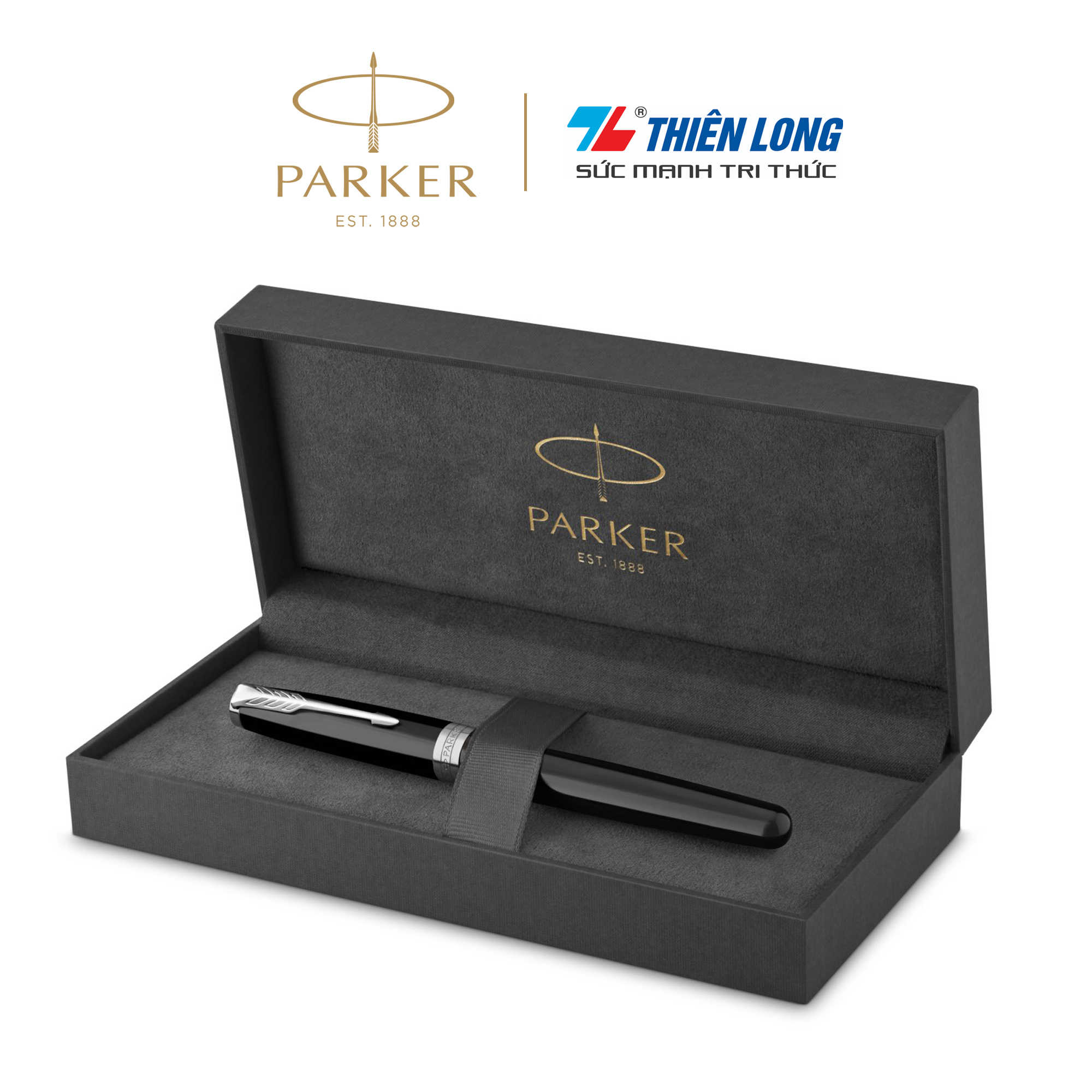 Thương hiệu Parker Dòng sản phẩm Parker Sonnet Loại sản phẩm Bút máy cao cấp Parker Ngòi bút Medium, 0.7 mm Chất liệu Ngòi thép không gỉ mạ crom Trọng lượng 450 gram Kích thước 180 x 90 x 40 mm Cài bút Bạc Màu mực None Màu thân Đen Đóng gói Hộp Parker Xuất xứ Pháp