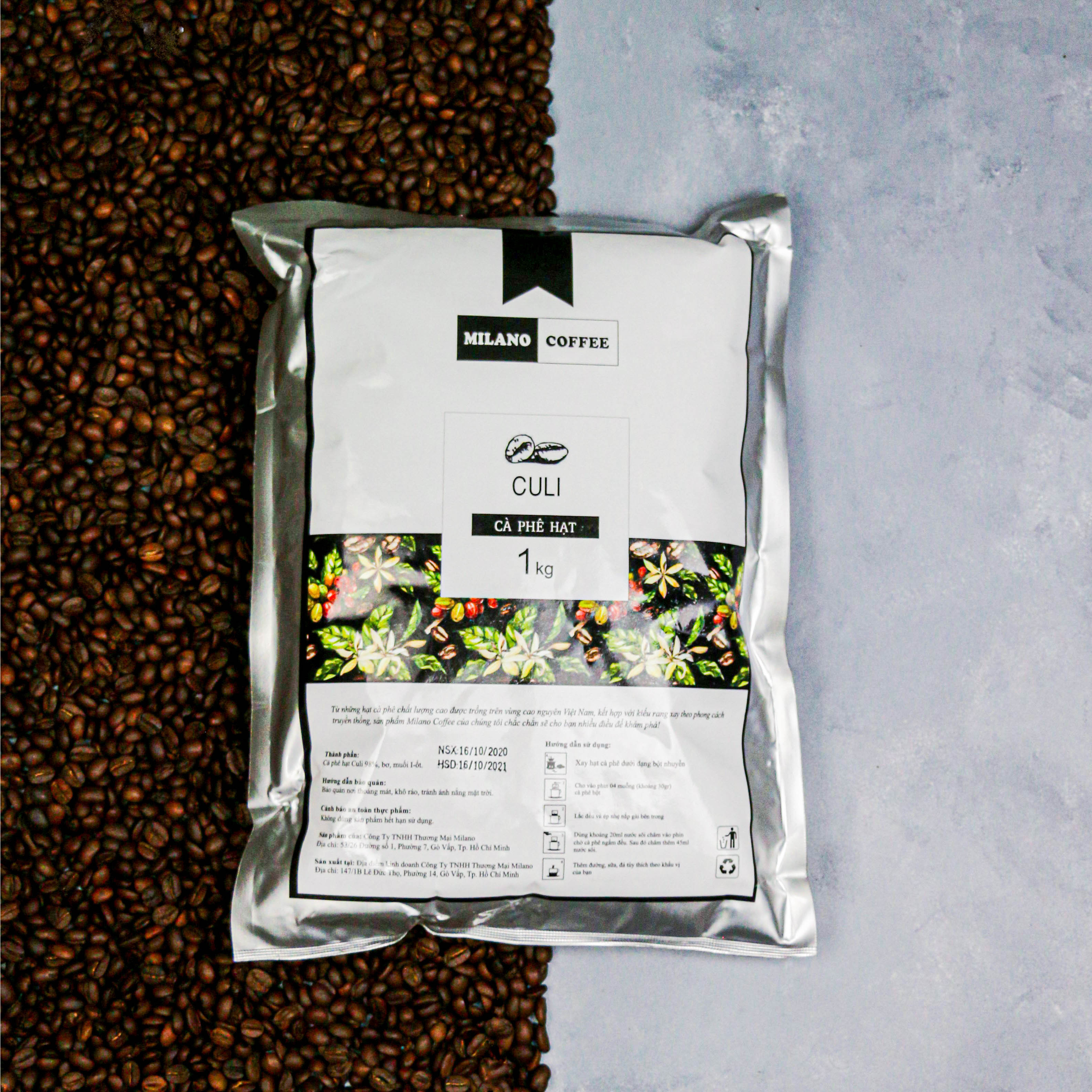 ✨Cà phê Milano loại cà phê hạt Culi loại 1kg