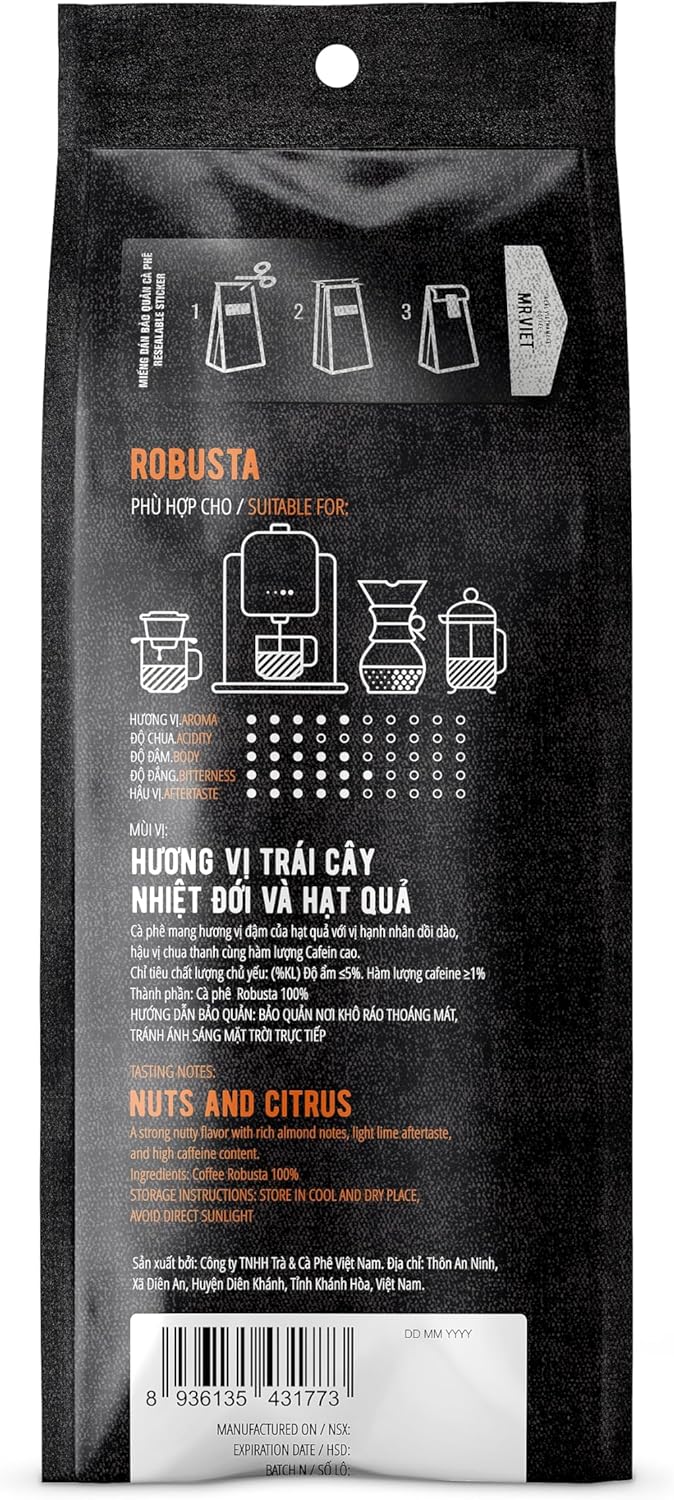 Cà phê rang xay Robusta Mr Viet 250g - Robusta Ground Coffee 250g