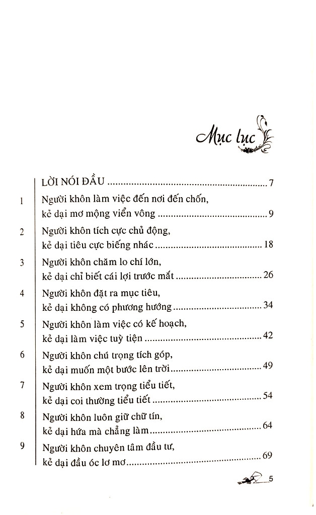 Từ những so sánh có tính đúc kết, sách sẽ giúp bạn đọc tự nhìn nhận bản thân để có thể học hỏi kinh nghiệm từ thành công của người khôn và thất bại của kẻ dại. Hy vọng sách sẽ giúp bạn tiến bộ hơn trong công việc và cuộc sống từ đó gặt hái được những thành công lớn trong cuộc đời.