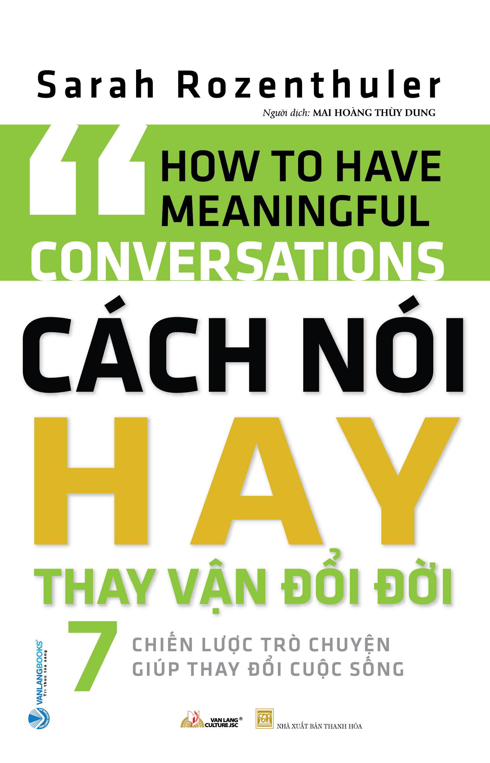 - Marci Shimoff, tác giả sách Love for No Reason and Happy for No Reason Bạn cảm thấy m.ình đã bỏ lỡ cơ hội nào đó hoặc không thể hiện được điều gì quan trọng nhất đối với m.ình? Bạn cảm thấy bế tắc khi nói về những tình huống quan trọng? Bạn cảm thấy m.ình chưa thực sự được lắng nghe? Bạn cảm thấy m.ình không biết nói chuyện, giao tiếp dở? Trò chuyện là công cụ quan trọng để chúng ta trở nên tiến bộ, tích cực hơn trong mọi khía cạnh của cuộc sống. Dù bạn cần phải nói chuyện với bạn đời về vấn đề phát sinh trong mối quan hệ, nói chuyện với nhân viên, khách hàng, đối tá hay nói với sếp về công việc, cuốn sách này sẽ cung cấp cho bạn bí quyết để đạt được mục tiêu của m.ình. CÁCH NÓI HAY THAY VẬN ĐỔI ĐỜI: Giúp bạn nuôi dưỡng sự tự tin và đạt được những kết quả lâu dài. Đưa ra các tình huống thực tế về những người bình thường đã thay đổi cuộc sống của họ như thế nào thông qua các cuộc trò chuyện. Giúp bạn xây dựng những thay đổi đơn giản trong cách nói để xây dựng niềm tin, sự cởi mở và những khả năng có thể xảy ra trong cuộc sống. Trò chuyện có ý nghĩa là cách hiệu quả nhất để mang lại sự thay đổi và phát triển thực sự trong cuộc sống. Cuốn sách này sẽ chỉ cho bạn cách làm điều đó.