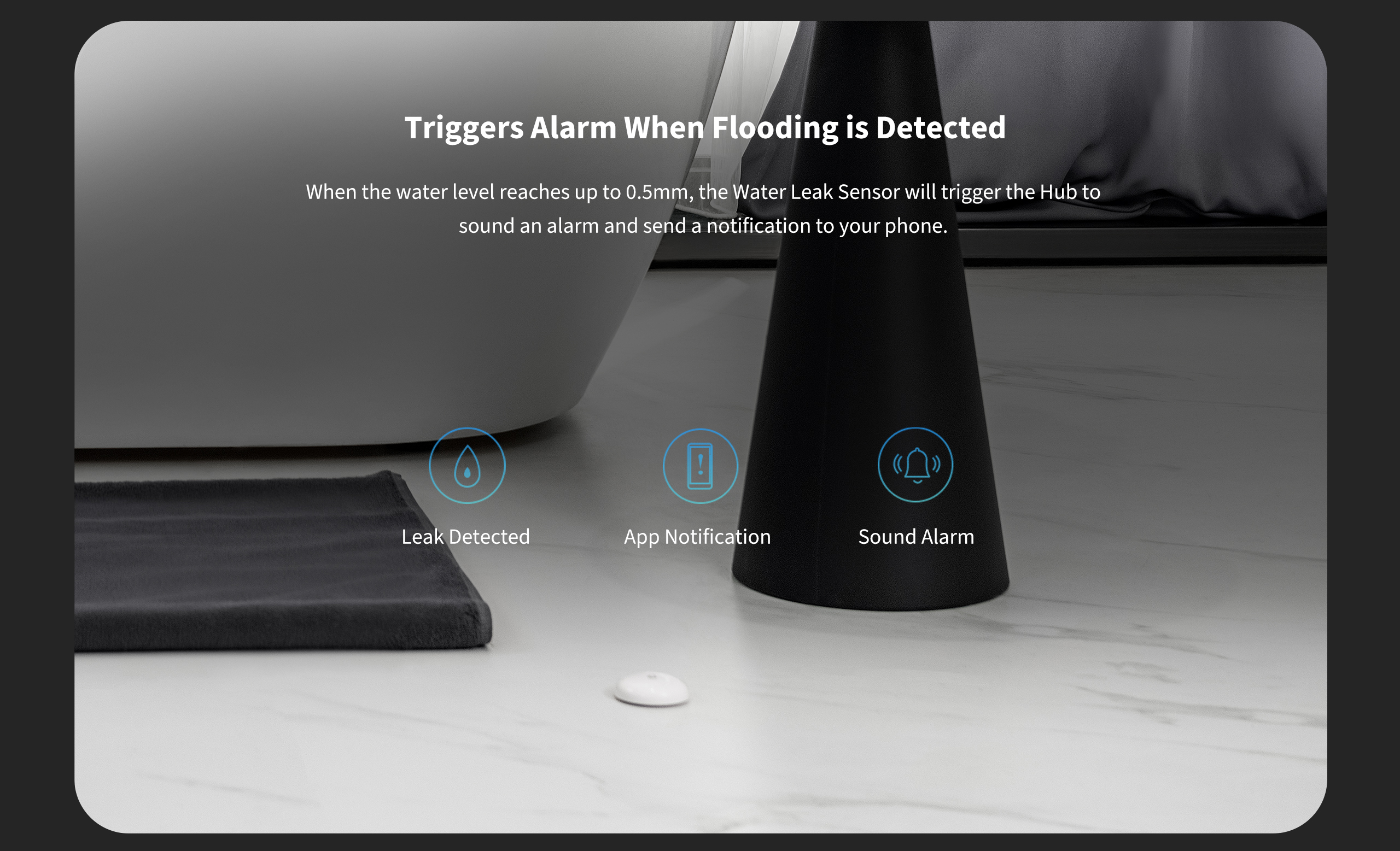 • Kích hoạt cảnh báo và thông báo đẩy trung tâm Aqara: Khi mực nước lên tới 0,5 mm, Cảm biến rò rỉ nước sẽ kích hoạt Hub để báo thức và gửi thông báo tới điện thoại của bạn.