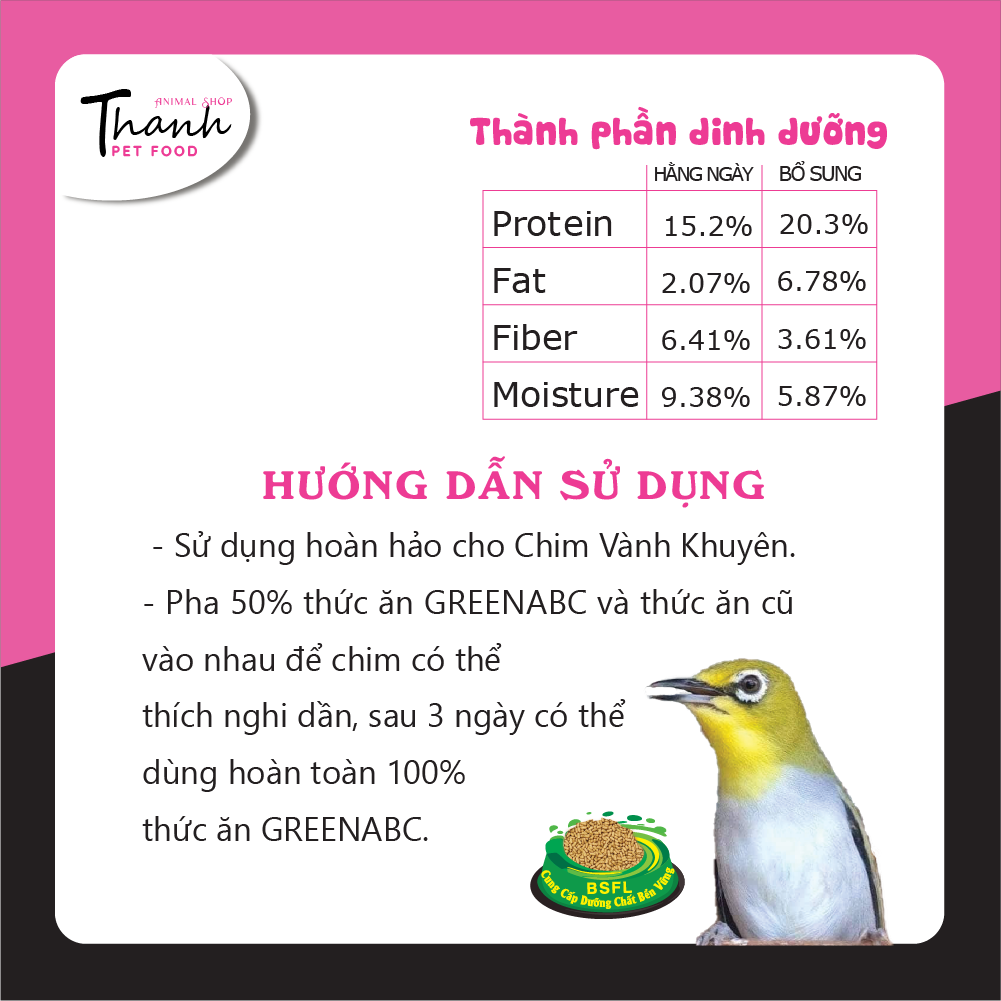 GREENABC - THỨC ĂN CHIM VÀNH KHUYÊN HÀNG NGÀY & BỔ SUNG
