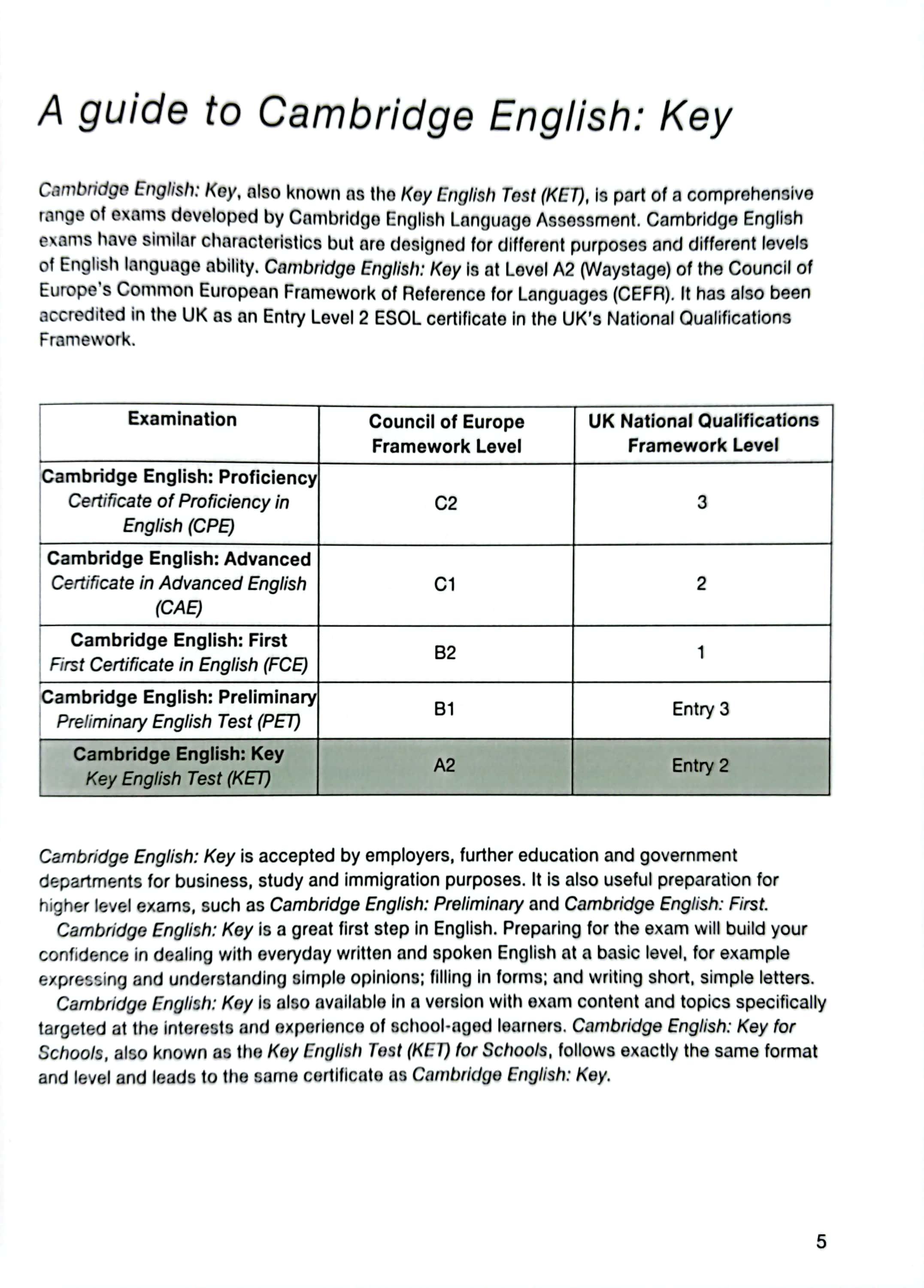 Prepare B1 Level 5 Workbook with Audio Download PREPARE 2nd edition Level 5 combines 'teen-appeal' topics with extensive preparation for the revised 2020 A2 Key for Schools exam. The Level 5 Workbook provides additional reading,
