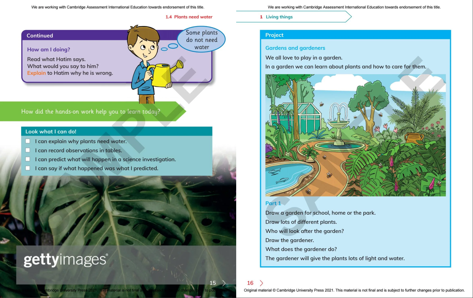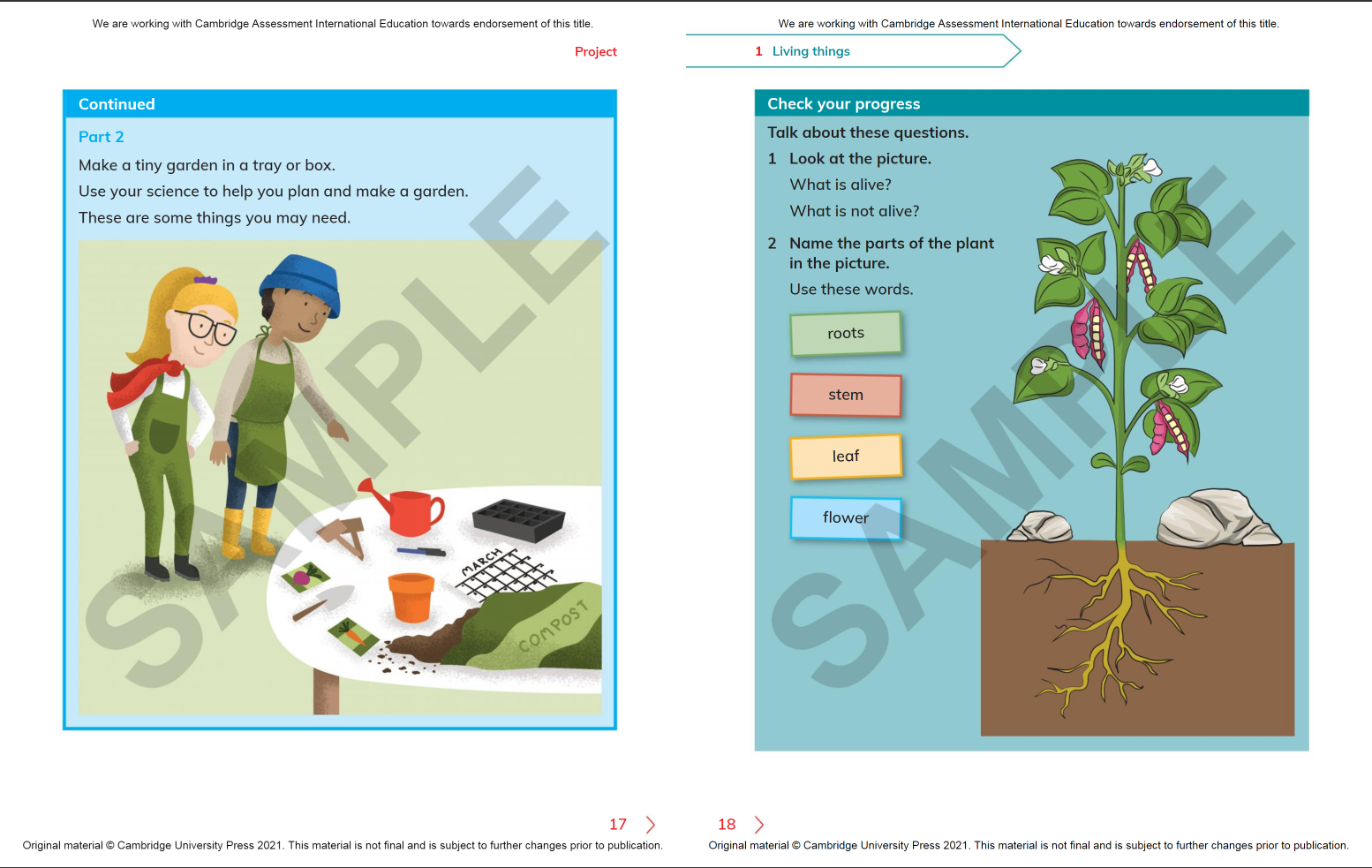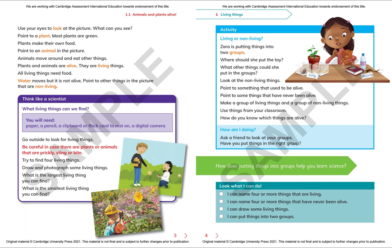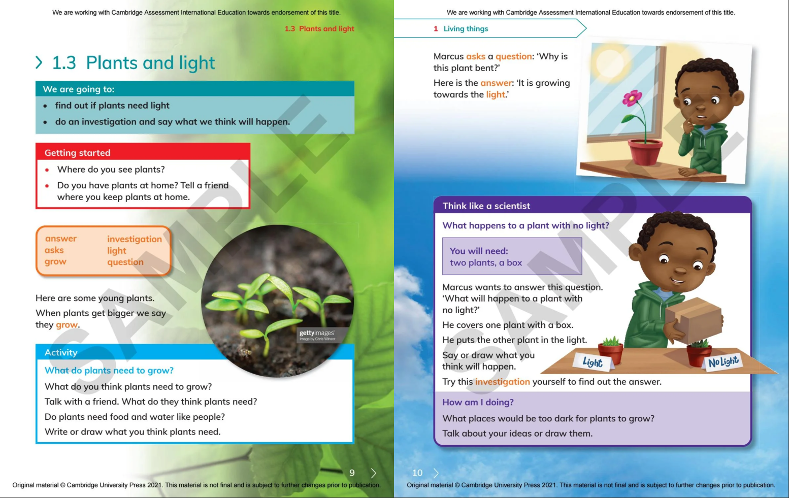 Discover our new resources for the Cambridge International Primary and Lower Secondary Curriculum Frameworks From experiments to discover what makes plants grow, to making musical instruments to investigate sound waves, Cambridge Primary Science gets your learners thinking like scientists! Packed with opportunities to plan experiments, make predictions and gather results, the series helps your learners think and work scientifically. Each unit ends with a project, like making a model garden, that helps students bring together what they have learnt, and understand how the topics relate to the real world. With vocabulary boxes, clear diagrams and supporting illustrations, the course makes science accessible for learners with English as a second language.