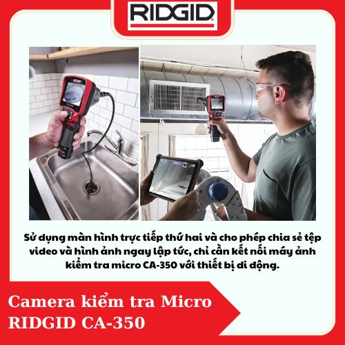 Mua tại TiktokCÔNG DỤNG Đầu dò kiểm tra đường ống Camera dễ dàng ghi lại ảnh tĩnh và video về các vấn đề khó tiếp cận khu vực và sau đó chia sẻ những phát hiện với RIDGID Connect TM giải pháp. ƯU ĐIỂM NỔI BẬT Thiết kế tay cầm gọn nhẹ và màn hình hiển thị rõ ràng thông số. đèn LED giúp dễ dàng phát hiện và chẩn đoán các vấn đề soi rõ Có chế độ xem hoàn hảo với các tính năng nâng cao như hình ảnh nâng cao như hình ảnh xoay và zoom kỹ thuật số THÔNG SỐ KỸ THUẬT Máy cầm tay micro CA-350 Máy ảnh 17 mm Cáp USB 3' (90 cm) Cáp RCA 3' (90 cm) có âm thanh Phụ kiện móc, nam châm, gương Pin Li-Ion 12 V Bộ sạc pin Li-Ion có dây Bộ đổi nguồn AC Phụ kiện tai nghe có micrô Thẻ SD 8 GB Gói hướng dẫn sử dụng
