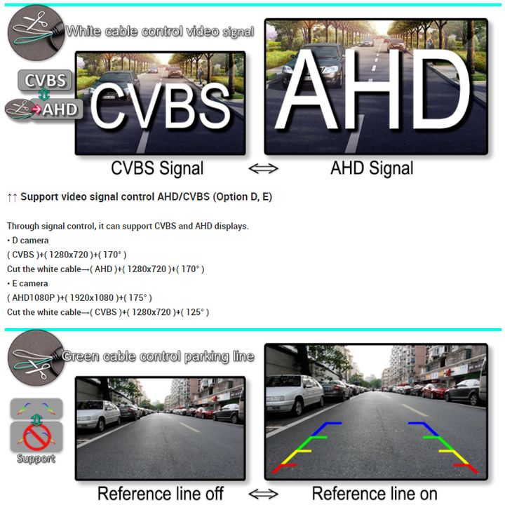 - Lưu ý: Nếu màn hình của quý khách không hỗ trợ độ phân giải AHD 1080P, cắt dây màu trắng để chuyển sang độ phân giải 720P (CVBS720P)