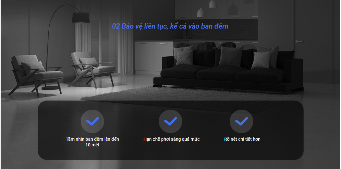 Luôn bảo vệ không ngơi nghỉ Nói lời tạm biệt với các video mờ nhòe ban đêm. Ngay cả trong bóng tối, camera EZVIZ H6c Pro 3K vẫn hiển thị tầm nhìn ban đêm sống động, mang lại cho bạn sự an tâm.