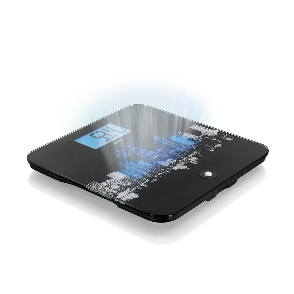 - Tính năng chiếu sáng và trang trí: Nhờ mắt cảm biến chuyển động, mặt cân sẽ tự động bật sáng khi người sử dụng đứng cách trong khoảng tối đa 1.5m theo phương vuông góc với mặt cân (khi đứng theo phương chéo hoặc mặt phía trước cân, khoảng cách nhận biết có thể khác biệt).