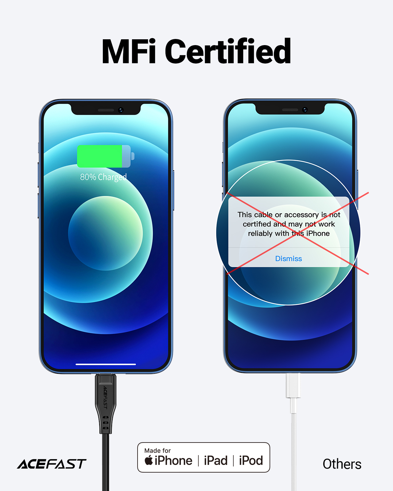 Cáp ACEFAST C3-02 , dòng điện lên đến 2,4A, chiều dài 1.2m, chất liệu TPE, chứng nhận M.F.I Thông số kỹ thuật: - - Chiều dài: 1.2m. Trọng lượng: 30g. - - Chất liệu vỏ bên ngoài:
