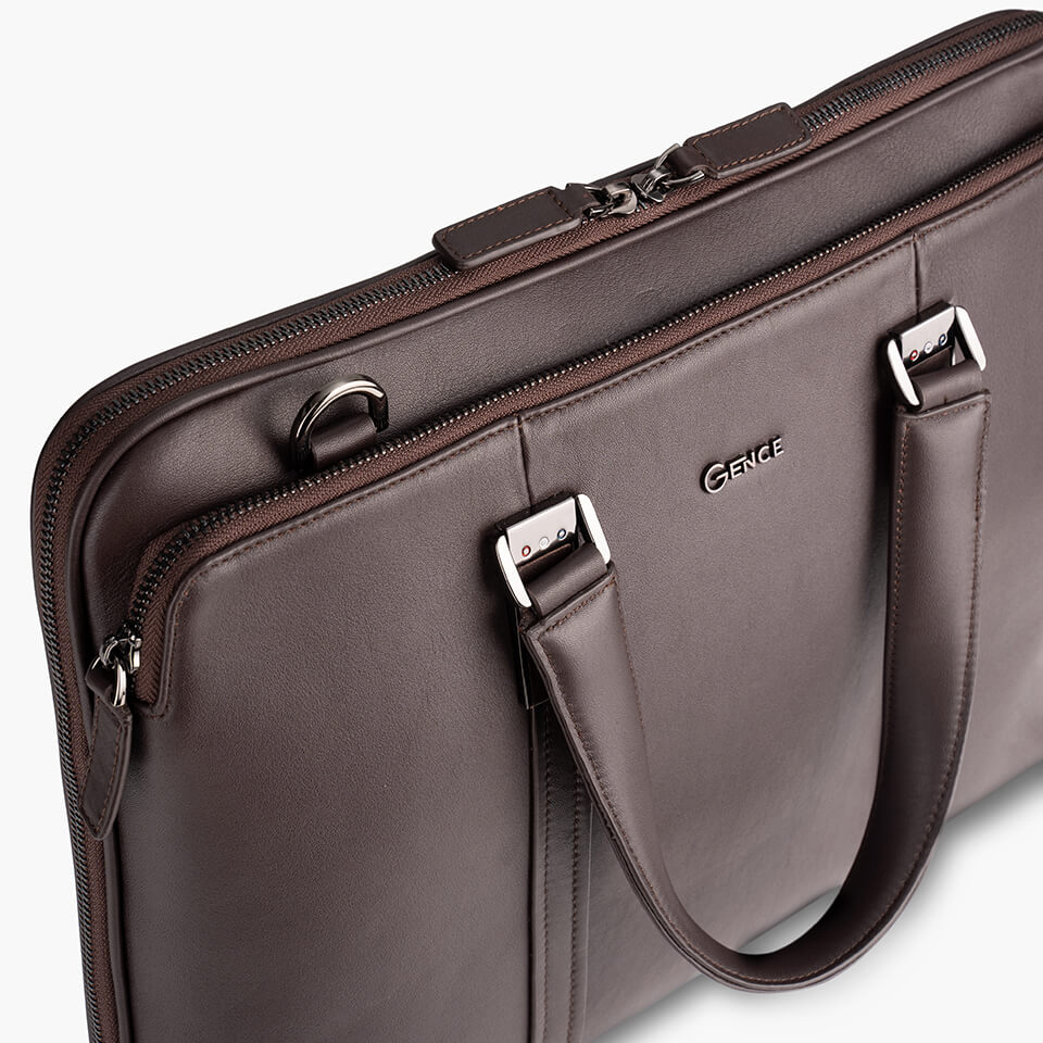 ✨Cặp Da Nam Túi Xách Công Sở GENCE GCE26 Da Bò Cao Cấp Màu Nâu Có Dây Đeo Vai