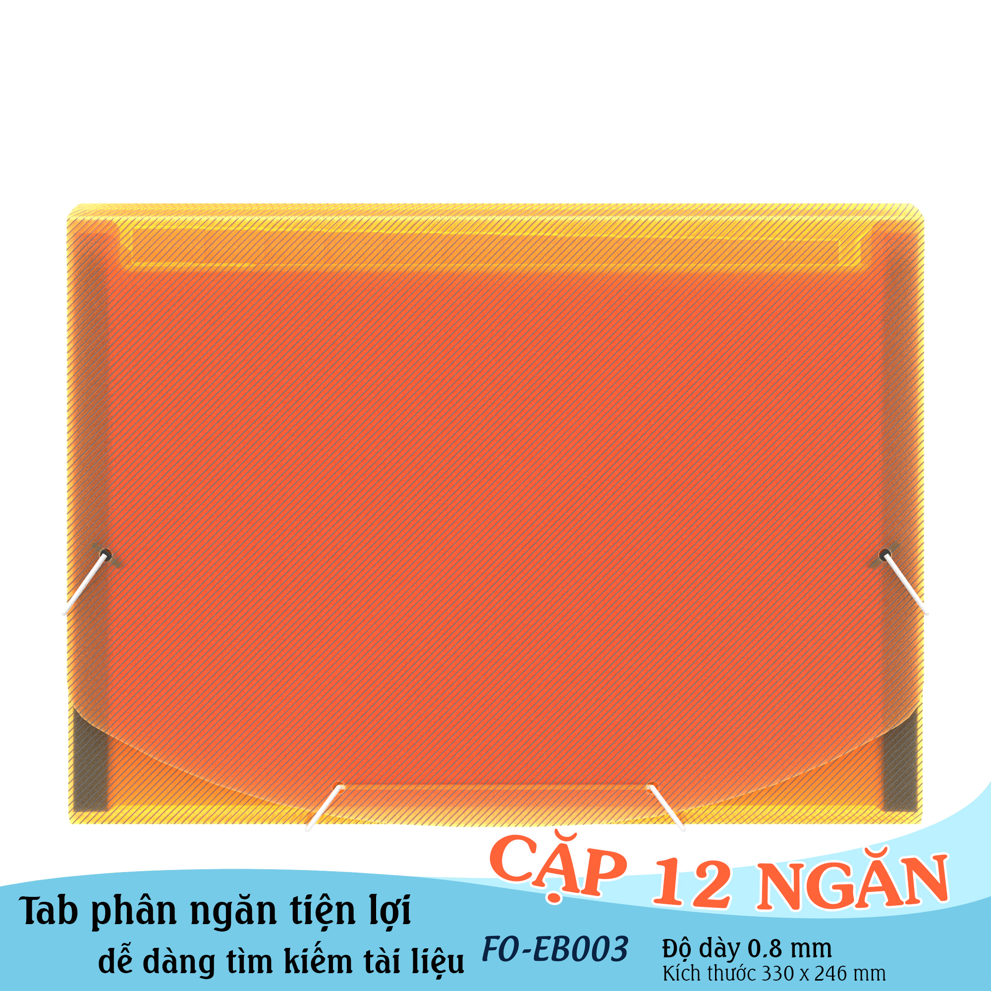 Cặp gồm 12 ngăn, khổ A4 có nắp đậy.