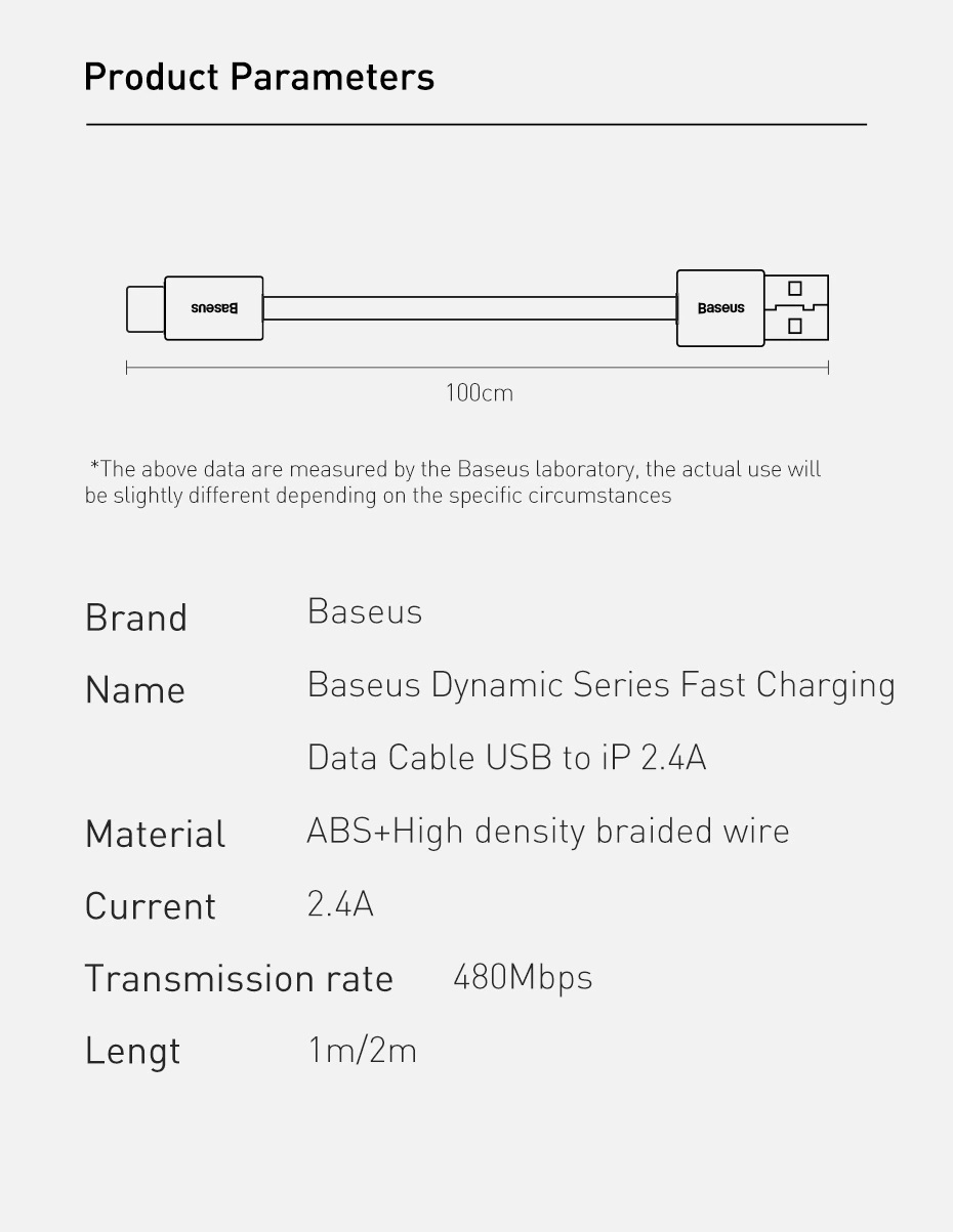- Cáp sạc USB to Lai-ning 2.4A Ba-seus Dynamic Series Fast Charging Data Cable là thế hệ cáp sạc USB type A to Lai-ning mới ra mắt của Ba-seus.
