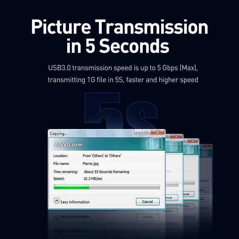 1. Transmission rate: 480mbps 2. Cable lenght: 1m 3. It's also backward compatible with full-speed USB 1.1 (12Mbps) and low-speed USB 1.0 (1.5Mbps) 4. Plug and play, no driver needed. 5. Good quality ugreen usb