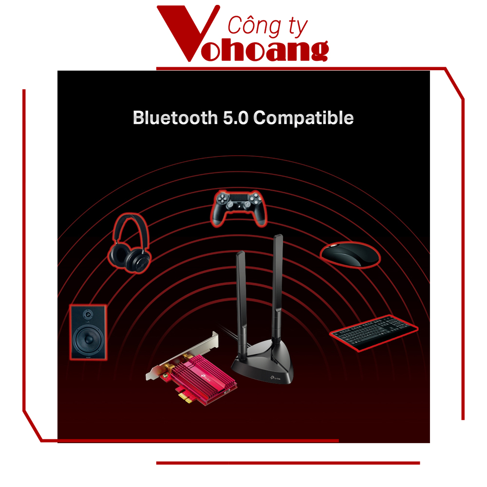 Card mạng Wireless TP-Link Archer TX3000E tương thích với Công nghệ Bluetooth 5.0 mới nhất , đạt tốc độ nhanh hơn 2 lần và phạm vi phủ sóng rộng hơn 4 lần so với Bluetooth 4.2. Kết nối nhiều thiết bị như bạn muốn, bao gồm bộ điều khiển trò chơi, tai nghe và bàn phím, để tận hưởng trải nghiệm mượt mà hơn