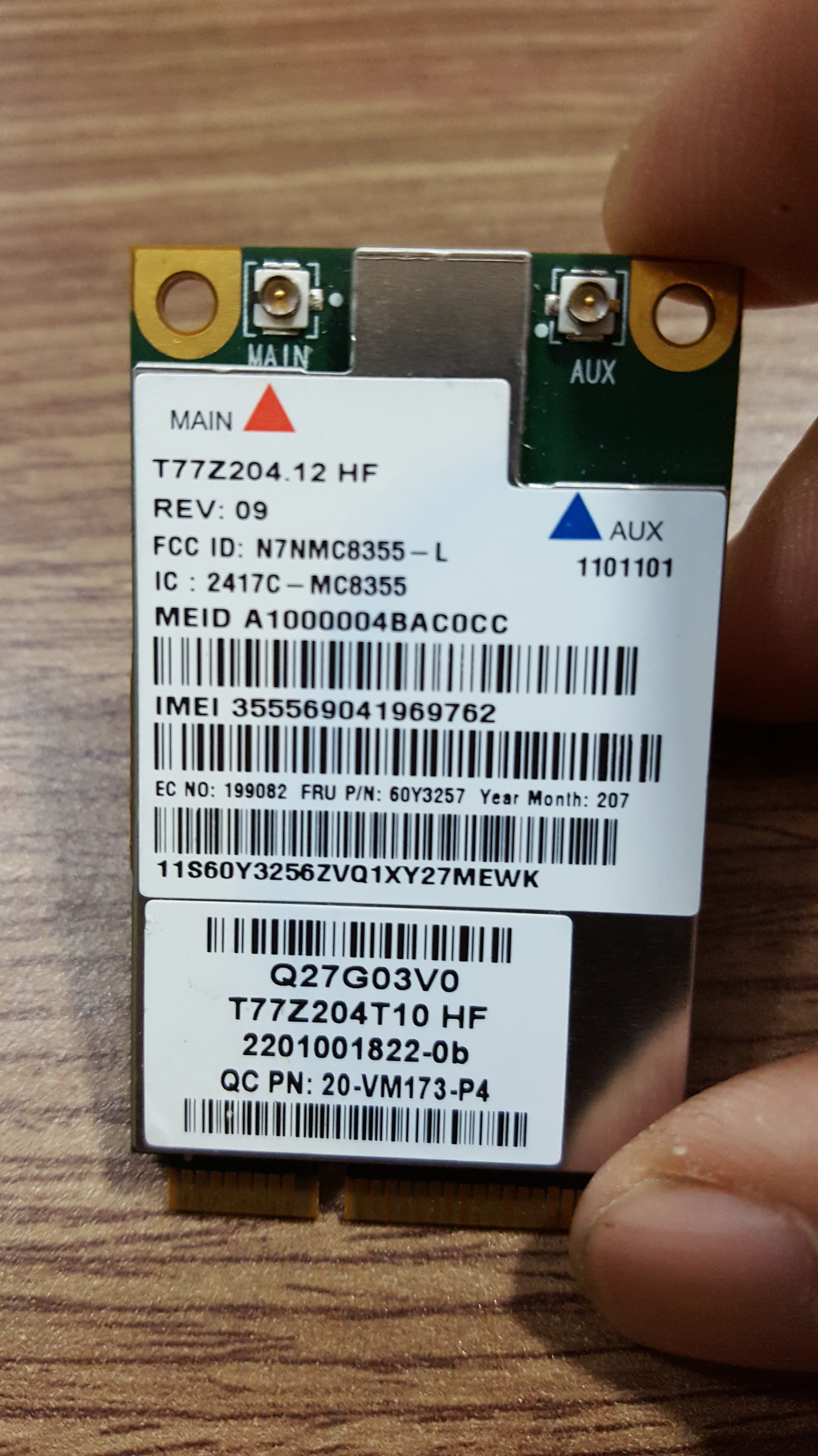 - Tên sản phẩm: Card wwan 3G Lenovo MC8355 (FRU: 60y3257)