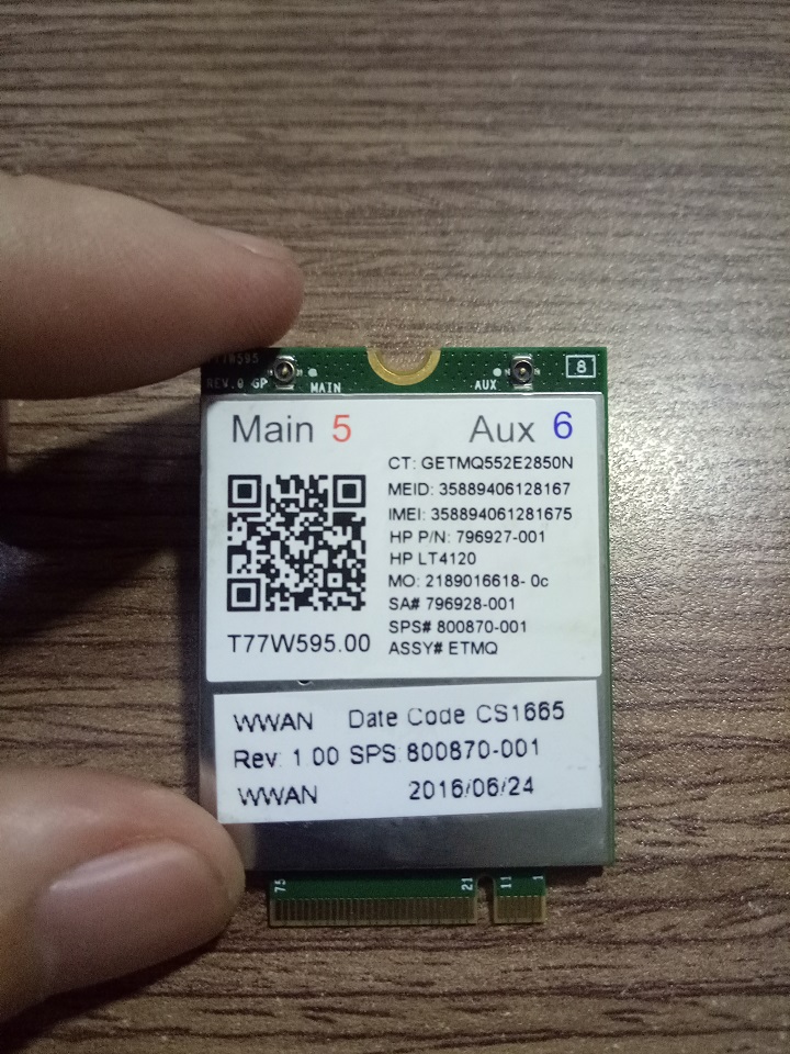 - Card WWAN 4G HP lt4120 - dùng cho laptop HP 820 G3,840 G3, 850 G3,Folio 1040 G3, Zbook 14,15,17 (G3,G4) - Hàng chính hãng - -Tình trạng: Hàng chính hãng HP, đã test thực