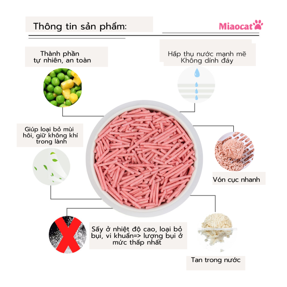 Cát đậu nành Miao không chỉ mang đến sự thoải mái và an toàn cho mèo cưng của bạn mà còn giúp duy trì môi trường sống trong lành và thơm mát. Hãy trải nghiệm sản phẩm chất lượng từ Miaocat để chăm sóc thú cưng của bạn một cách tốt nhất.