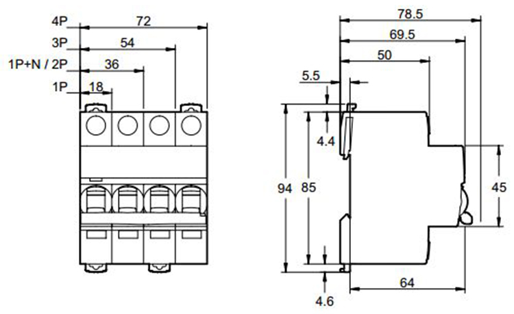 • Dòng điện định mức: 16A,20A, 25A, 32A, 40A,50A,63A 30mA
