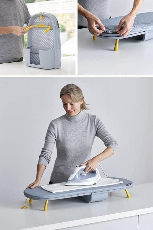 - Cầu là Joseph Joseph Glide có chân đế độc đáo, làm cho nó nhỏ gọn hơn so với các bàn ủi truyền thống khác khi cất đi. - Cài đặt và điều chỉnh nhanh