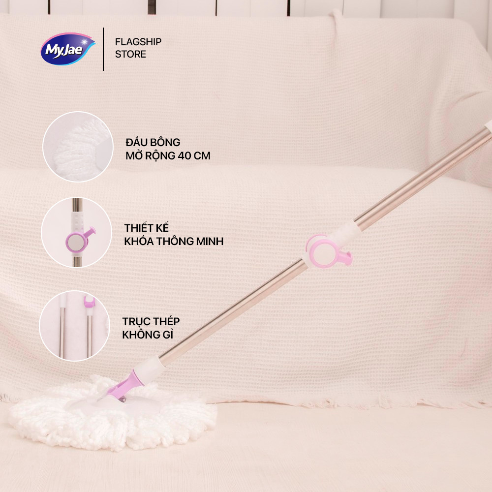 ✨Cây Lau Nhà Đơn MyJae Sợi Microfiber Xoay 360 Độ Phù Hợp Cho Nhiều Loại Thùng Lau 134cm