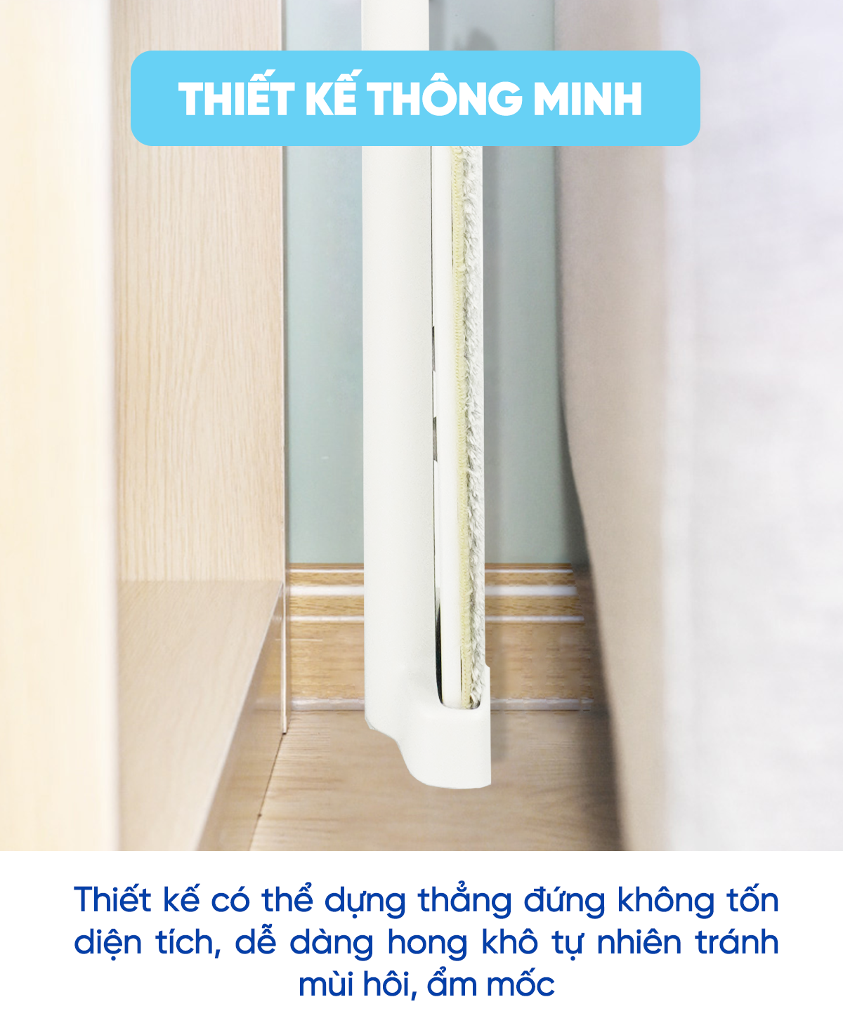 • Thiết kế cất thẳng đứng không tốn diện tích, cây lau sau khi sử dụng có thể dựng lên cất ở nhiều vị trí khác nhau trong nhà, có thể phơi khô tự nhiên không có mùi hôi, ẩm mốc.