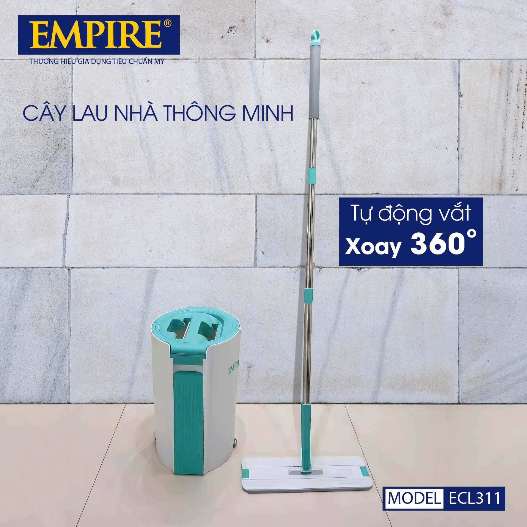 CÂY LAU NHÀ EMPIRE ECL311 Bộ Lau Nhà Tự Vắt Thông Minh với khả năng lau sạch sàn nhà một cách nhanh chóng và nhẹ nhàng, phù hợp với mọi loại bề mặt sàn như sàn gạch, sàn gỗ, sàn đá, tường ốp gạch và mặt kính, phù hợp với mọi không gian và diện tích nhà ở.