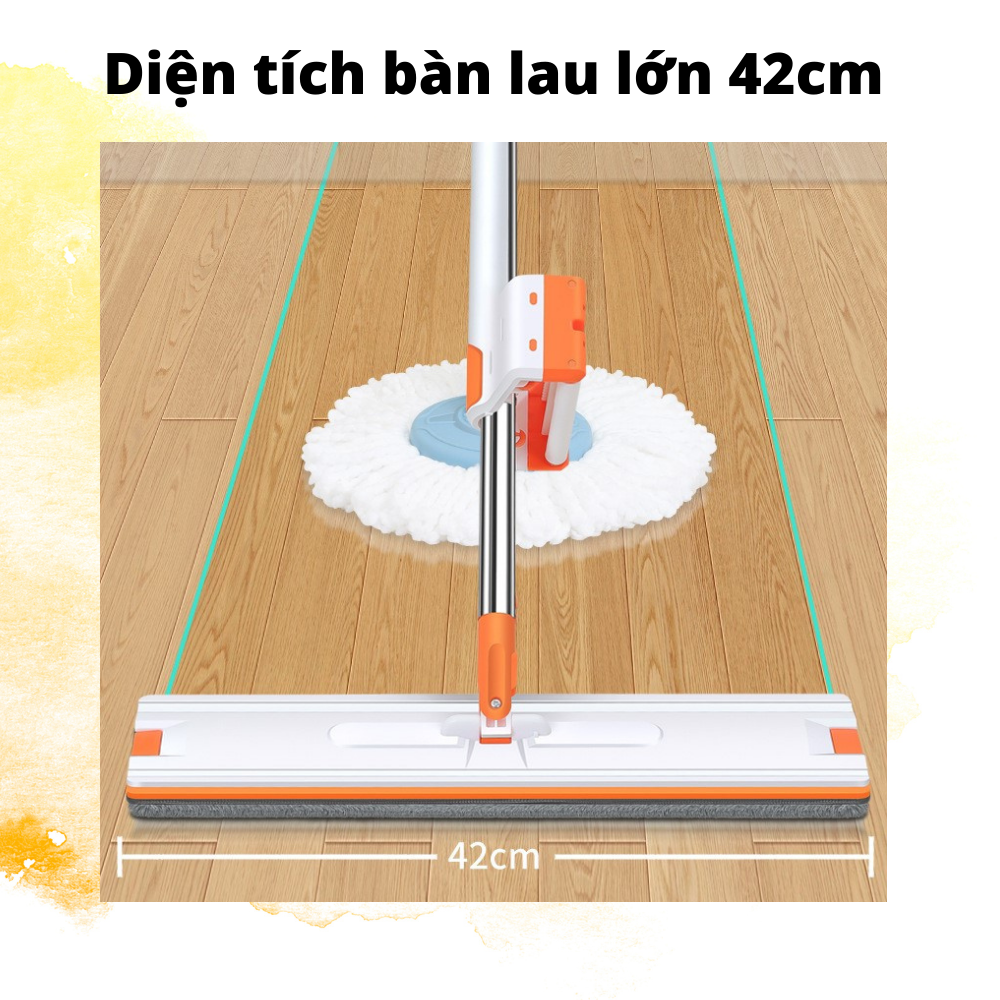 Bàn lau xoay 360 độ linh hoạt trong các không gian nhỏ hẹp nhất như gầm tủ, gầm ghế, gầm bàn, khe góc tường Đặc biệt cán cây dài 1,26m giúp chị em lau nhà không cần khom cúi đỡ mệt mỏi lưng và cổ khi vệ sinh nhà cửa.
