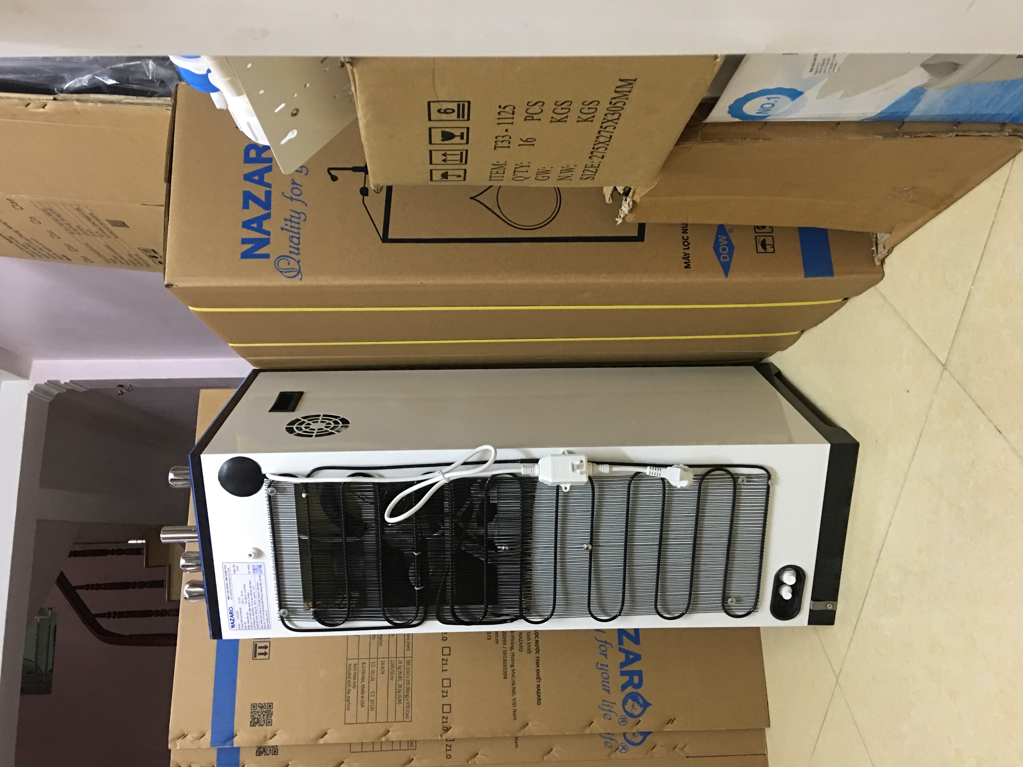 Hệ thống lọc RO: Nazaro với 06 cấp lọc 01 vòi với 3 chức năng ( nóng, lạnh, nguội) Dung tích bình áp chứa nước: 8 Lít Dung tích bình lạnh: 2 Lít/giờ Dung tích