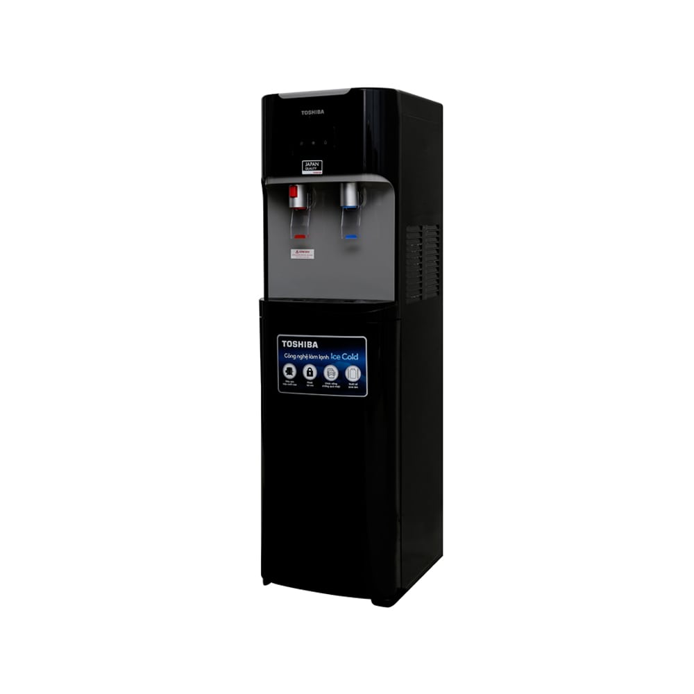 Cây nước nóng lạnh Toshiba thiết kế với màu đen sang trọng, kiểu dáng nhỏ gọn, hiện đại, dùng đẹp trong cả không gian kiến trúc gia đình, văn phòng, nhà hàng – khách sạn, khu du lịch,