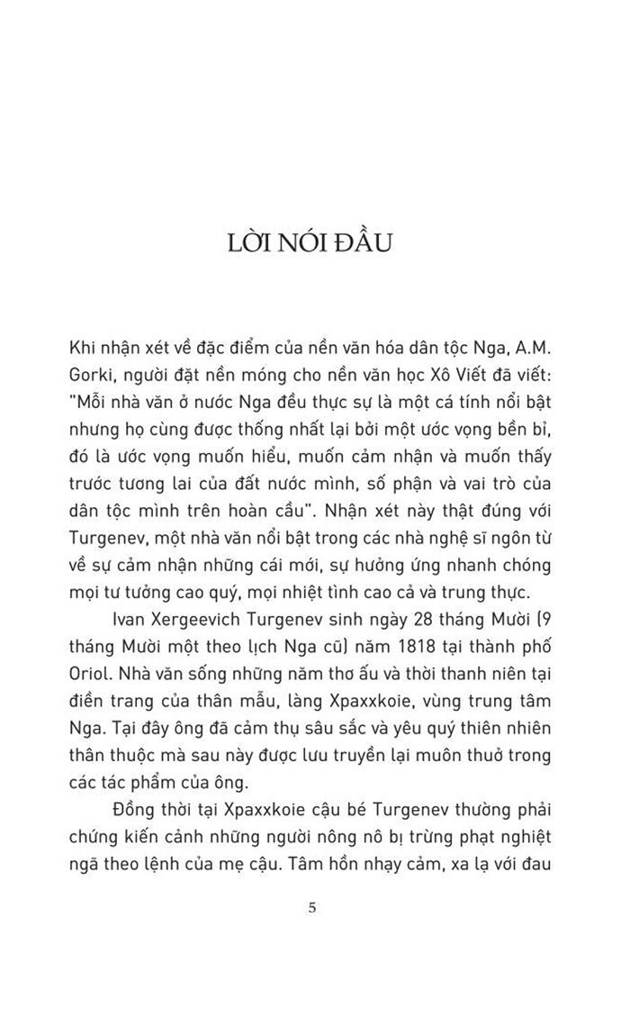 Khi Arkadi, chàng sinh viên mới tốt nghiệp về nhà, cha và ông bác quý tộc của cậu đã khó chịu xiết bao với một người bạn lạ hoắc đi theo. Đó là Bazarov, kẻ nổi loạn, kẻ dám “không thừa nhận bất cứ quyền uy nào, cũng như chẳng chấp nhận một nhân tố nhỏ nhoi nào về đức tin”. Kiệt tác của Turgenev về xung đột giữa các thế hệ đã làm nước Nga bị sốc khi xuất bản lần thứ nhất vào năm 1862 và ngày nay vẫn còn nguyên sự tươi mới, trực tiếp, kích động như đã luôn như vậy với những độc giả lần đầu chạm trán mẫu nhân vật hư vô nổi tiếng của nó.