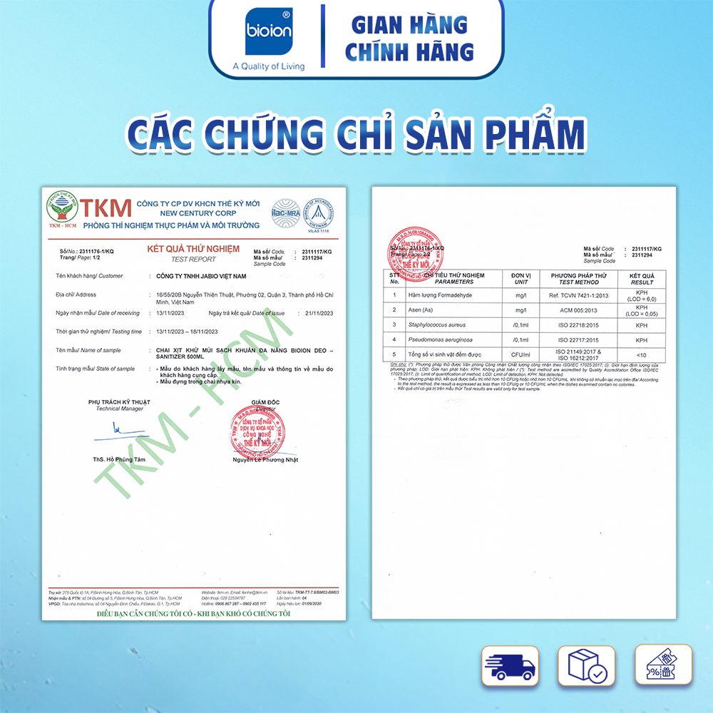 • Hiệu quả loại bỏ 99,9% vi khuẩn được chứng nhận bởi Viện nghiên cứu Osaka Nhật Bản.