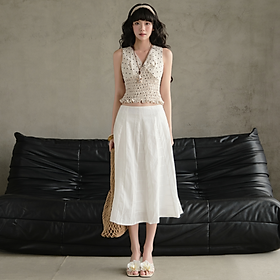CHI TIẾT SẢN PHẨM - Sản phẩm : Chân váy dài chân chất vải cotton thêu có size dành cho nữ Gabrielle Miều Est.2013 - Chất liệu : Cotton Thêu - Màu sắc : TRẮNG
