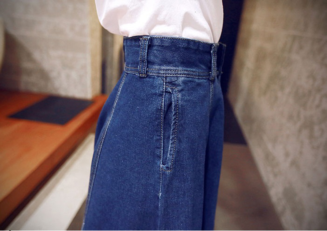 Chân váy jeans xanh dáng dài chữ A xẻ tà phía sau