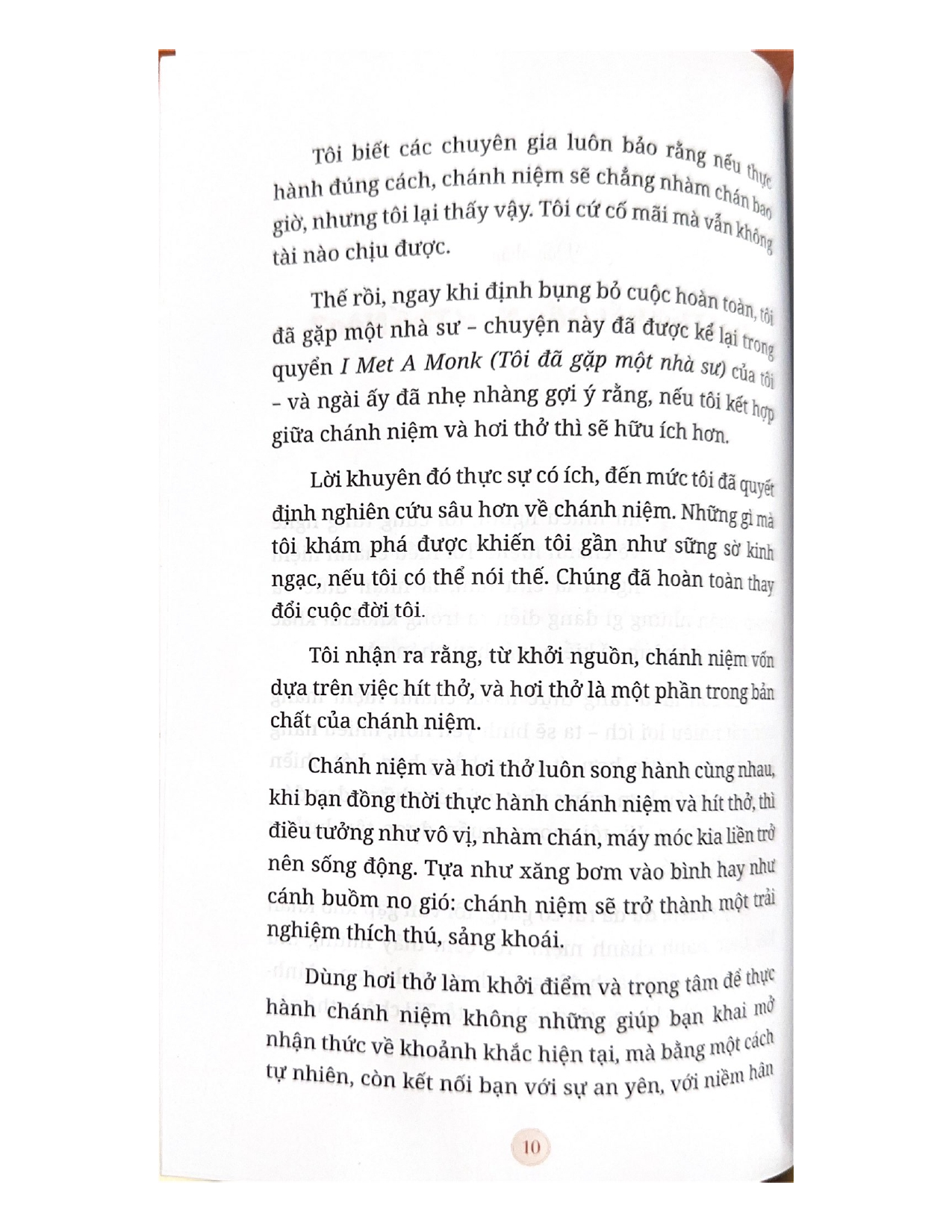 - Giới thiệu Every Breath You Take - Chánh Niệm Trong Từng Hơi Thở Từ khởi sinh, chúng ta đã có sẵn trong người một công cụ tuyệt hảo để thực hành chánh niệm. Công cụ này luôn hiện diện trong ta và quanh ta. Ta có thể kết nối với nó bất cứ lúc nào ta muốn, trong mọi tình huống và nó chẳng bao giờ rời xa ta. Đó chính là hơi thở Chánh niệm và hơi thở luôn song hành cùng nhau, khi bạn đồng thời thực hành chánh niệm và hít thở, thì điều tưởng chừng như vô vị, nhàm chán, máy móc kia liền trở nên sống động. Tựa như xăng bơm vào bình hay như cánh buồm no gió, chánh niệm sẽ trở thành một trải nghiệm thích thú, sảng khoái.