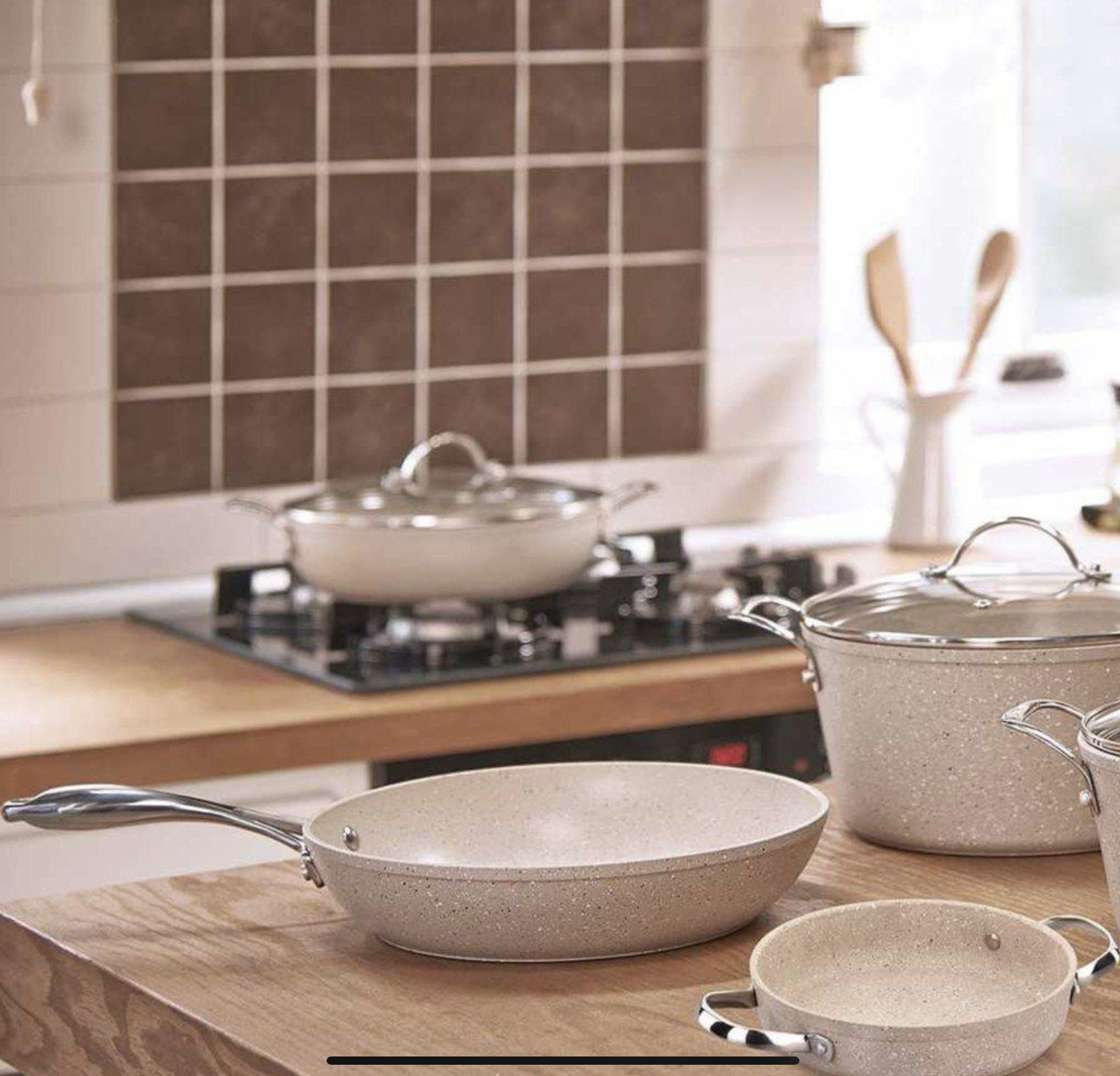 Chảo chống dính Korkmaz Granita dùng được với mọi loại bếp, kể cả bếp từ.