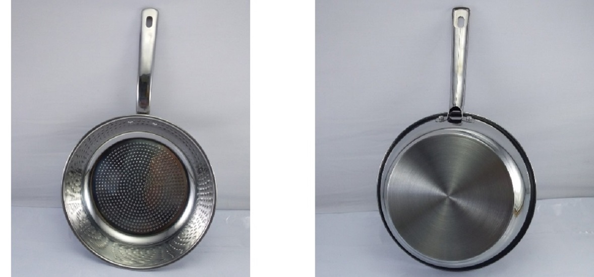 Chảo có đáy thiết kế kiểu mắt lưới nổi, có thể vừa dùng rán/chiên không bị đọng mỡ ở thực phẩm
