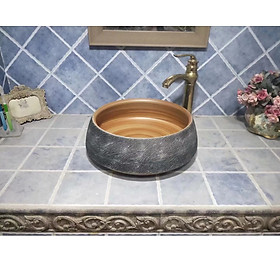 Chậu Tròn Đen Ánh Vàng GRVL04 ️ Thiết kế tinh tế, màu ĐEN bóng mặt trong và ngoài, ,Màu đen quét ánh vàng làm cho không gian phòng tắm trở lên hiện đại và huyền bí, phù