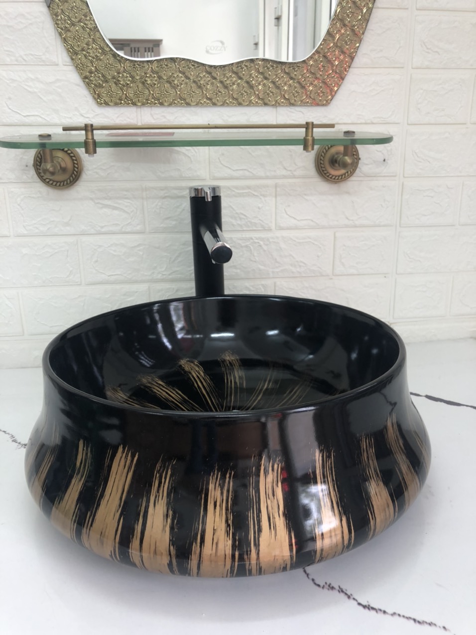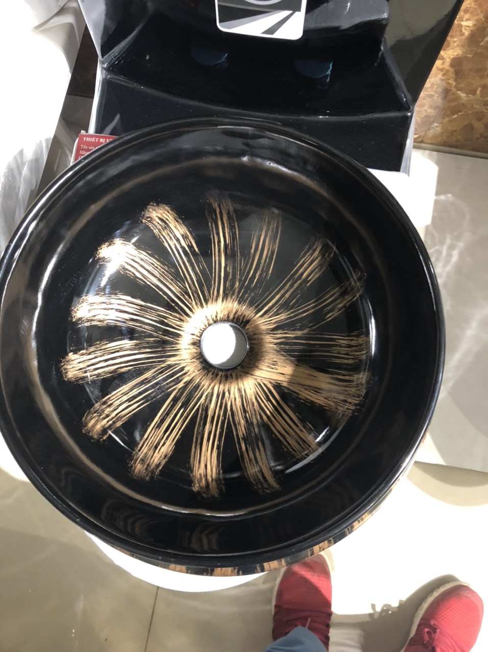 Chậu Lavabo Đen Hoa Văn Vàng TTCERA LB93