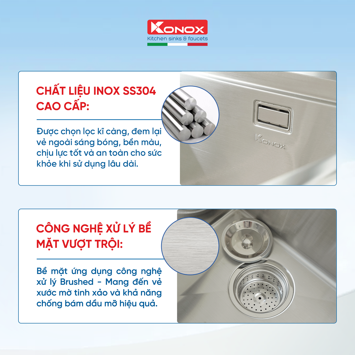 Chậu rửa bát KN 11650TD là sản phẩm duy nhất trong bộ sưu tập chậu handmade có tích hợp bàn chờ. Một cải tiến mới về cả thẩm mỹ và công năng từ Konox. Không chỉ kết hợp được trọn vẹn bề mặt xước mờ hiện đại cùng thiết kế hạ bậc độc đáo mà còn có thêm phần bàn chờ rộng rãi giúp mở rộng không gian thao tác trên mặt chậu, giúp người sử dụng có thêm không gian để thao tác và giữ cho khu vực xung quanh quầy bếp luôn khô ráo.