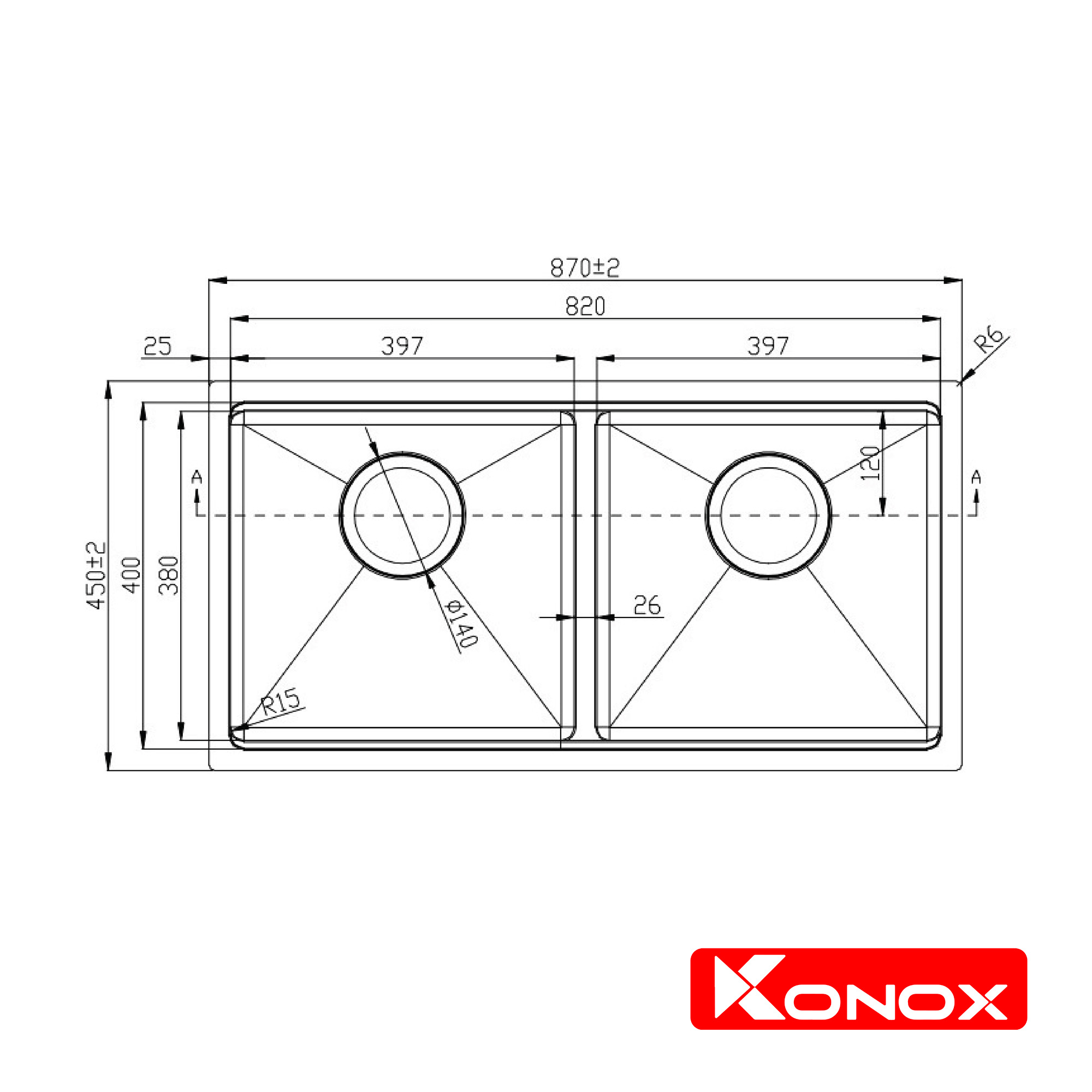 Chậu rửa bát lắp âm bàn đá Konox Undermount Series Model KN8745DUB| Konox Kitchen Sink|2021