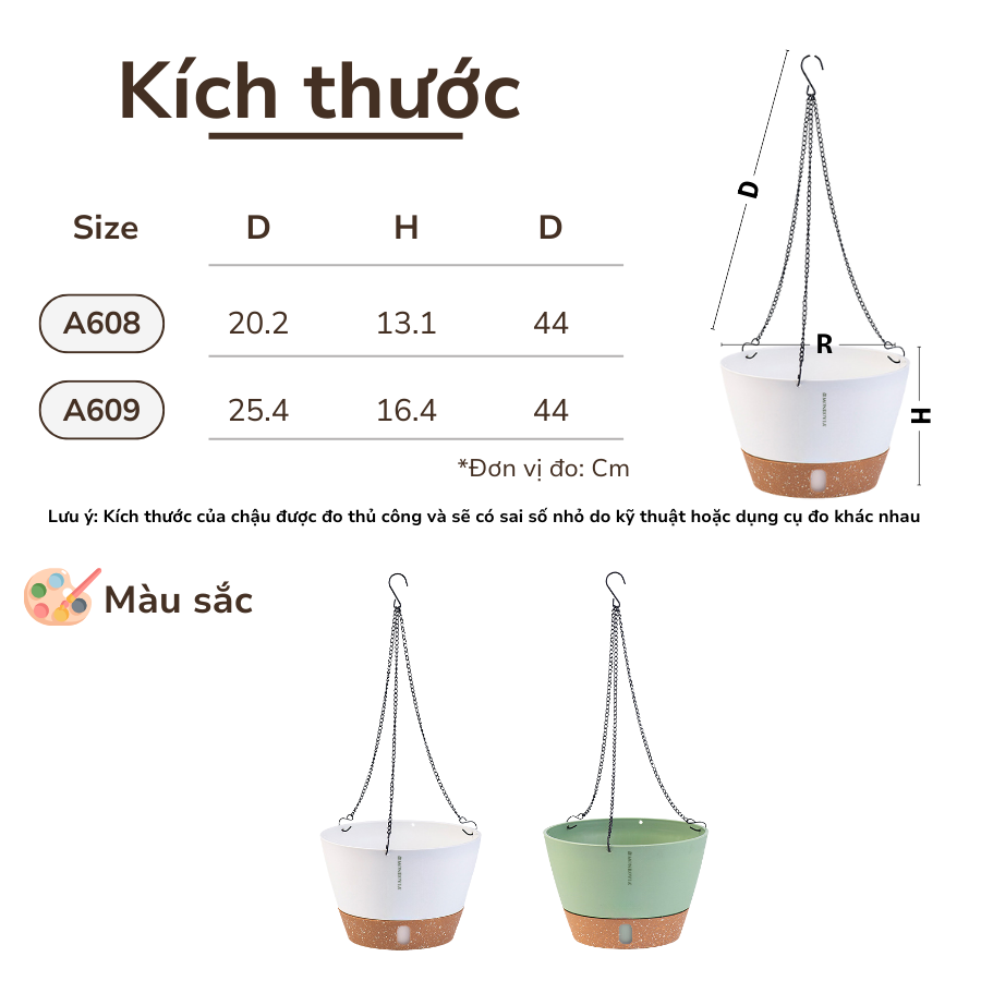 DOCNEEM XIN GIỚI THIỆU ĐẾN BẠN MÃ SẢN PHẨM - CHẬU TREO TRỒNG CÂY TỰ TƯỚI THÔNG MINH MONROVIA _ Chất liệu: PP cao cấp _ Cấu tạo: Chậu bao gồm hai lớp chậu *